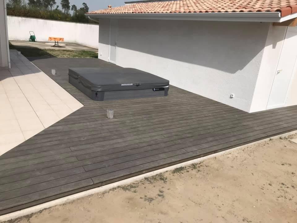 Les terrasses en bois composite, réalisées à partir de fibres de bois et de résines plastiques, se démarquent par leur faible entretien : un simple balayage et un nettoyage occasionnel à l’eau savonneuse suffisent. Le composite a aussi l’avantage d’être sans échardes, sans nœuds et résistant à la pourriture, garantissant ainsi votre tranquillité d’esprit.